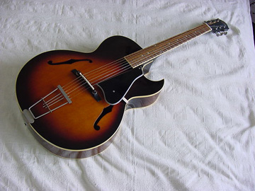 BODY=SPRUCE/MAHOGANY ARCHED TOP with f-HALLNECK =MAPLE 1pc.? FINGER BOAD= ROSE WOOD PICKUPS= NON BRIDGE =ROSE WOOD CONTROLS =NON HARD WARE =CHROME CLOLR= SB |